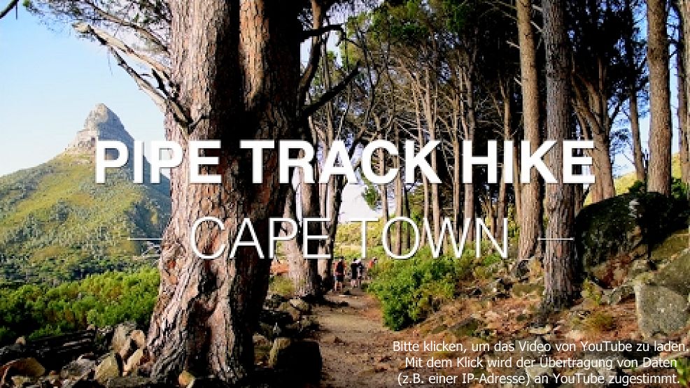 Gutes Schuhwerk ist allerdings notwendig, da der Pipe-Track streckenweise sehr steinig ist. Eine ganze Reihe von Pfaden zum Tafelberg hinauf gehen vom Pipe-Track ab (Kasteelspoort, Diagonal-Route, Woody-Ravine und Corridor-Ravine). Dauer: ca. 3 Stunden