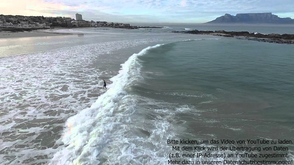 Big days sind in Big Bay selten - es gibt bessere Wellenspots in der Kap-Region. Aber kein anderer vereint so viele Vorteile wie Bloubergstrand: Großer Parkplatz, Kiosk, Toiletten, Aufriggwiese und die besten Chicks machen den Aufenthalt angenehm. Außerdem schottet eine felsige Landzunge die Bucht gegen störende Windwellen ab, so daß der Swell sauber geordnet in die Bucht laufen kann.