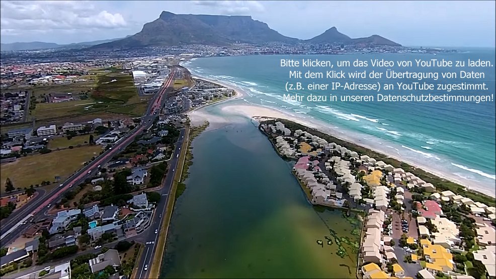 "Lagoon Beach" in MilnertonNur ca 1km südlich Richtung Tafelberg mündet die Milnerton Lagune ins Meer ("Lagoon Beach"). Milnerton ist bekannt für den allgemein stark wehenden Wind.