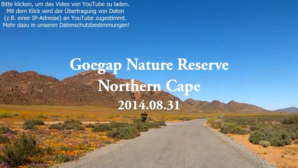 Das Goegap Nature Reserve bei SpringbokDieses Nature Reserve liegt ca. 15 km östlich von Springbok, an der Straße in Richtung Flughafen. Dieses mittlerweile auf fast 16.000 ha erweiterte Gebiet ist ein Muss für jeden Pflanzenfreund.
