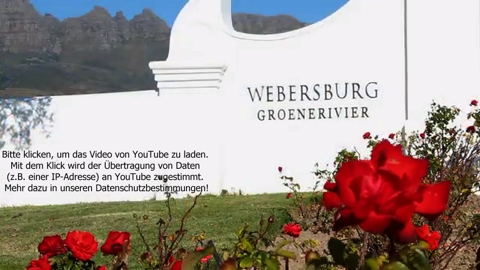 Angeschmiegt an die majestetischen Huegel des Helderberg in Stellenbosch liegt Webersburg im Herzen der berühmten Weingerion am Kap, in Nachbarschaft mit den international renommierten Weinguetern Alto und Rust en Vrede Estates. Ein Teil des historischen Weinguts Groenerivier, das bis 1693 zugreift, wurde 1996 von der Familie Weber uebernommen. Das heutige Weingut Webersburg ist weit bekannt fuer seine preisgekroenten Cabernet Sauvignon's.
